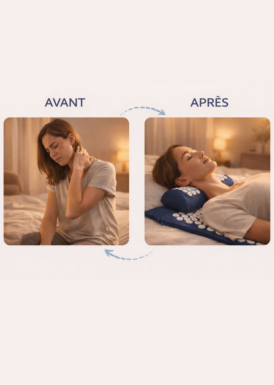 Lors des premières utilisations, une sensation de picotement peut apparaître. C’est normal. Après quelques minutes, le corps se détend et la sensation devient agréable. Commencez par 5 à 10 minutes et augmentez progressivement.